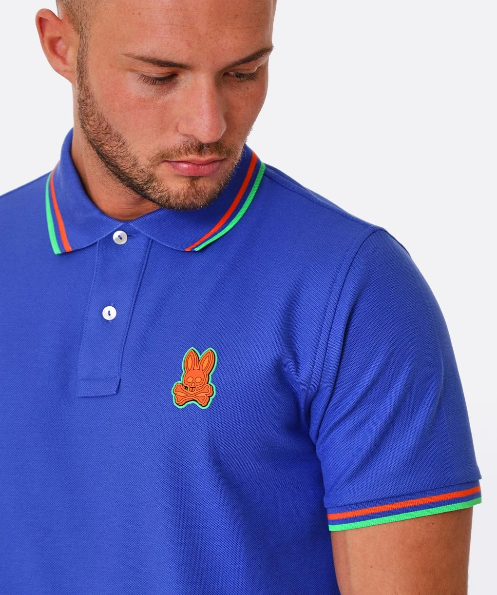 The Banks polo shirt by Psycho Bunny draws inspiration from the vivid colours of the 90s. Expertly engineered in the softest cotton pima pique, the polo shirt will ensure day long comfort and breathability. Showcasing a Trim Fit that sits between classic and slim, the top is complete with an innovative anti-roll collar and taped seam construction for heightened comfort levels. Featuring split side vents and two button placket, whilst the mother-of-pearl buttons and silicone logo add signature finishes.