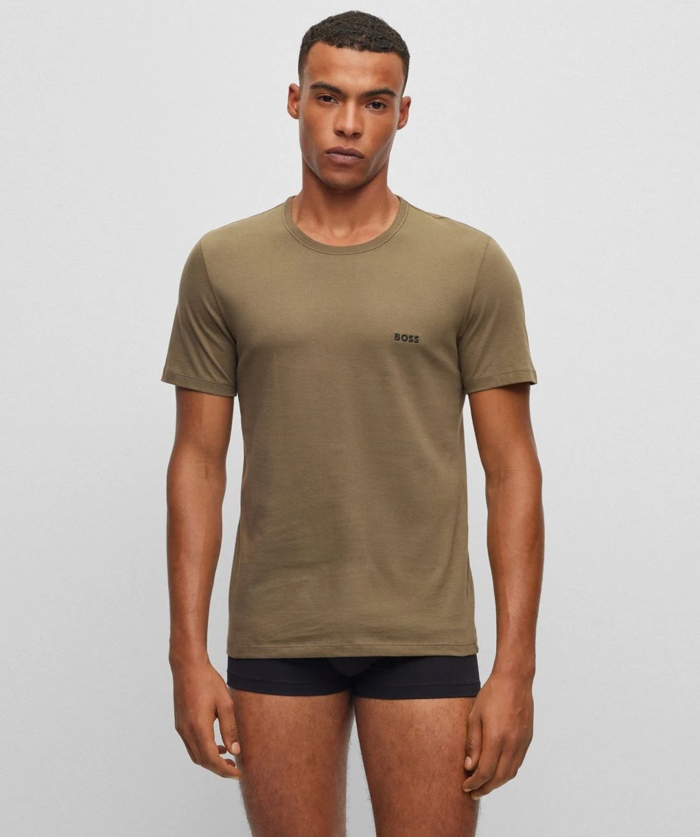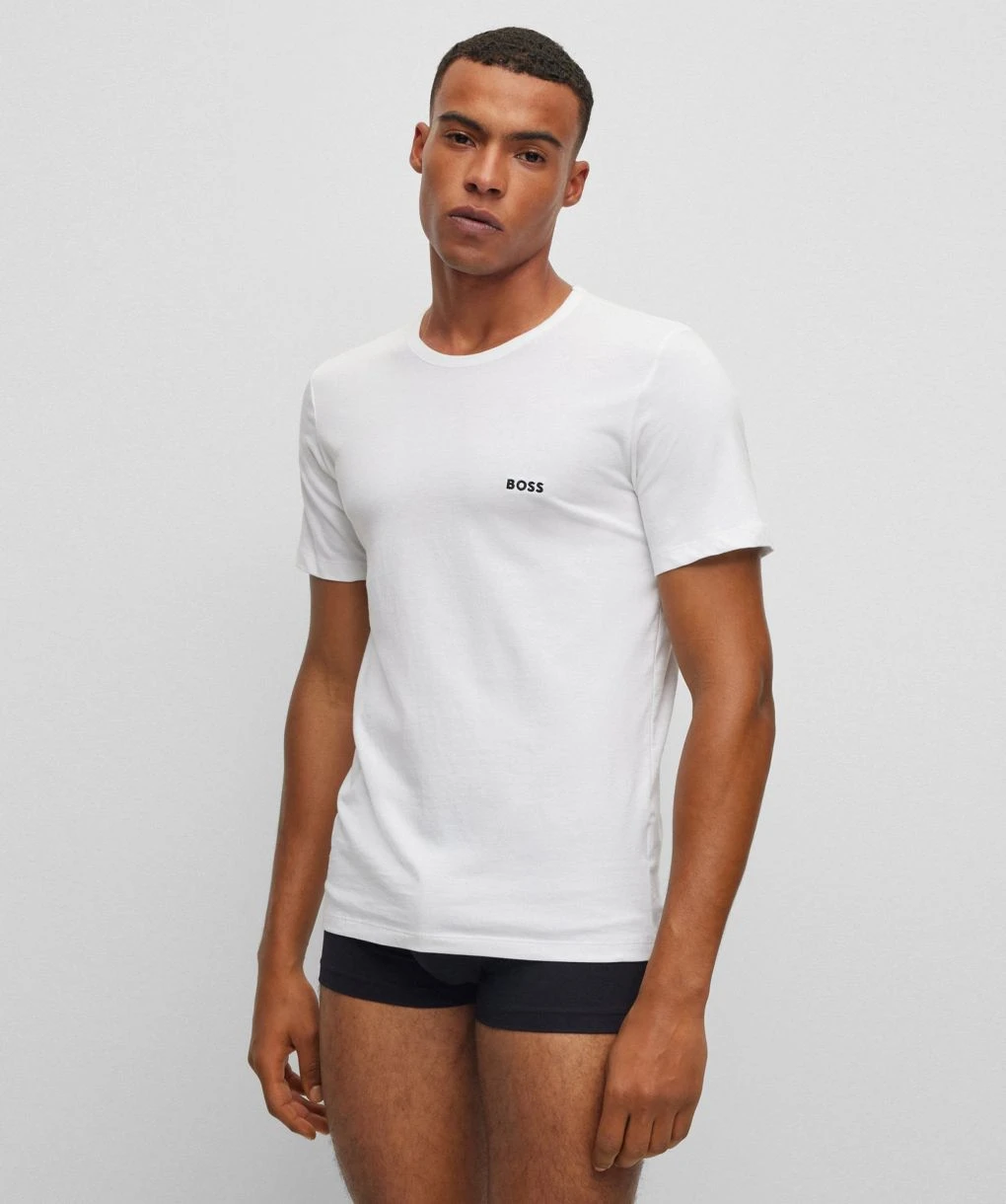An essential set for every gent, the BOSS t-shirts offer a simple style in three different colours. Engineered in soft cotton jersey, the regular fit t-shirts have a classic crew neckline and boast the Hugo Boss logo to the chest. A versatile style to build a foundation for your looks.