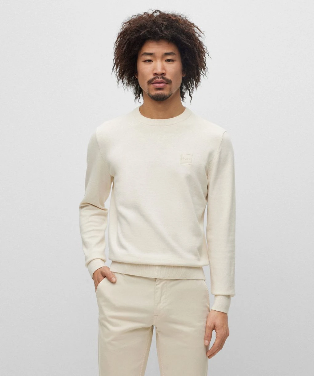 The BOSS Kanovano jumper is a refined choice for seasonal layering. Knitted in a cotton and cashmere blend, the jumper offers a super soft handle. Featuring a classic crew neck and rib trims, whilst the woven brand badge adds iconic detail.