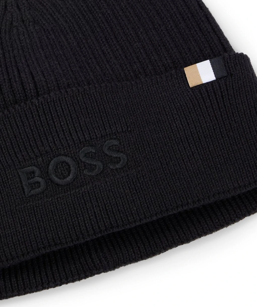 Upgrade your winter accessories with the BOSS Magico beanie. Engineered in a cotton and wool blend with a chunky rib knit, the beanie hat will ensure comfort and essential warmth. Featuring a turn up hem with the label’s iconic logo, whilst the versatile colour options make for easy styling with your clothing.