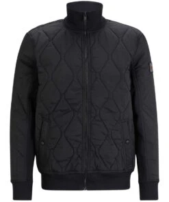 The BOSS Zequilt 01 jacket is a modern option ideal for trans-seasonal layering. Engineered with a padded front panel in crinkled fabric, the jacket has been filled with recycled yarns providing warmth yet a super lightweight handle. Featuring a cosy funnel neck with zip-through closure and rib trims, whilst the press stud pockets add handy functionality.