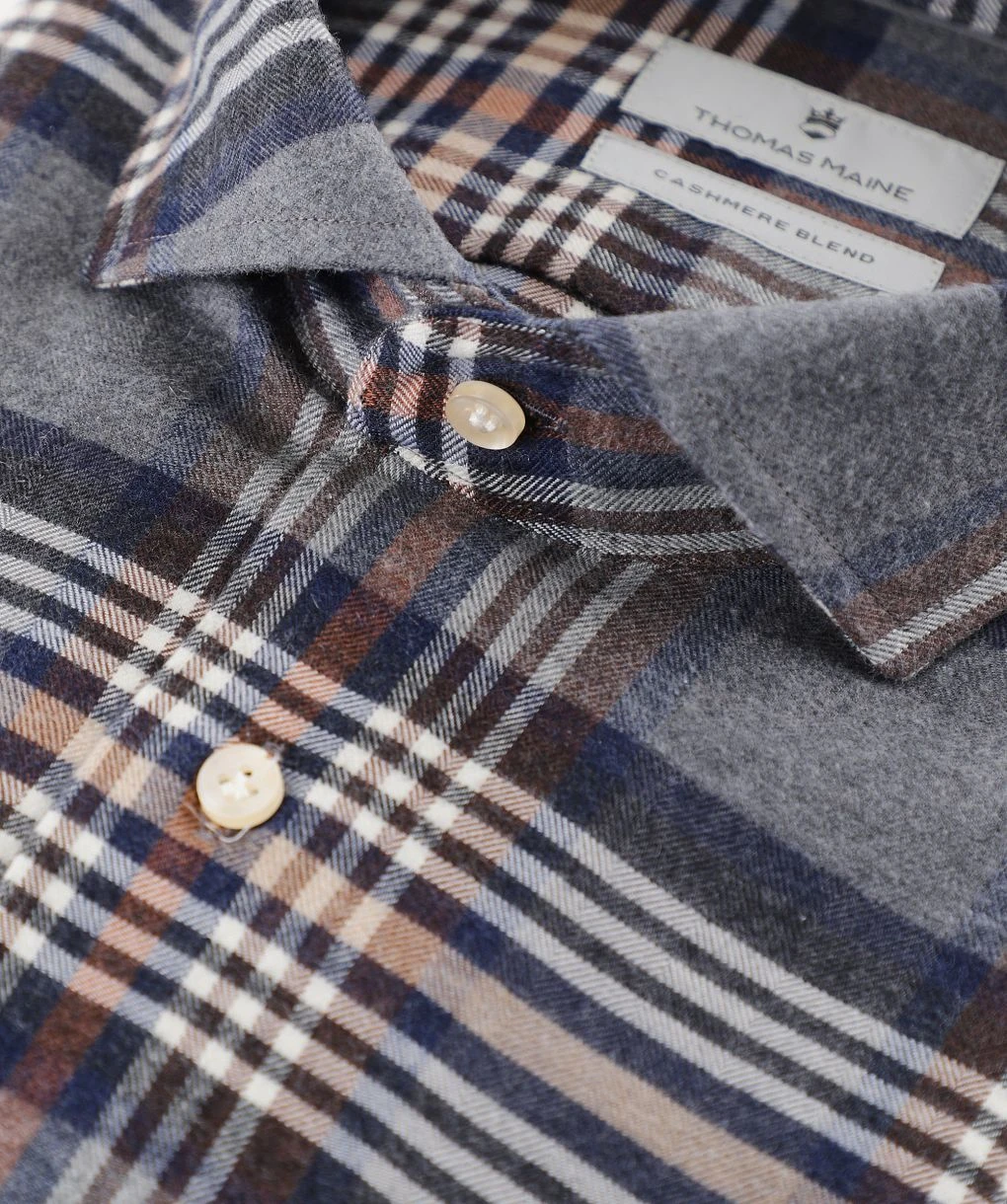 Elevate your winter shirting with the Thomas Maine check shirt. Cut to a tailored fit and crafted in a flannel cotton with a touch of cashmere, the shirt promises unbeatable softness and comfort. Featuring a cut away collar, French placket and adjustable cuffs, whilst the check pattern lends country charm.