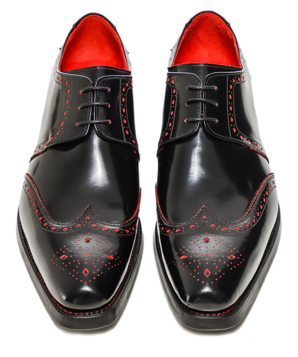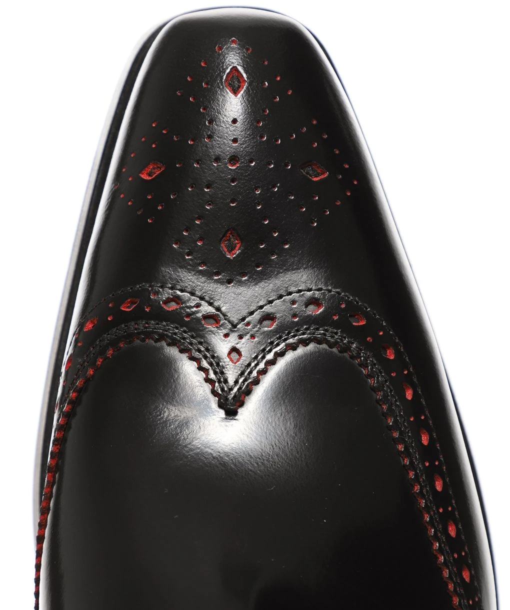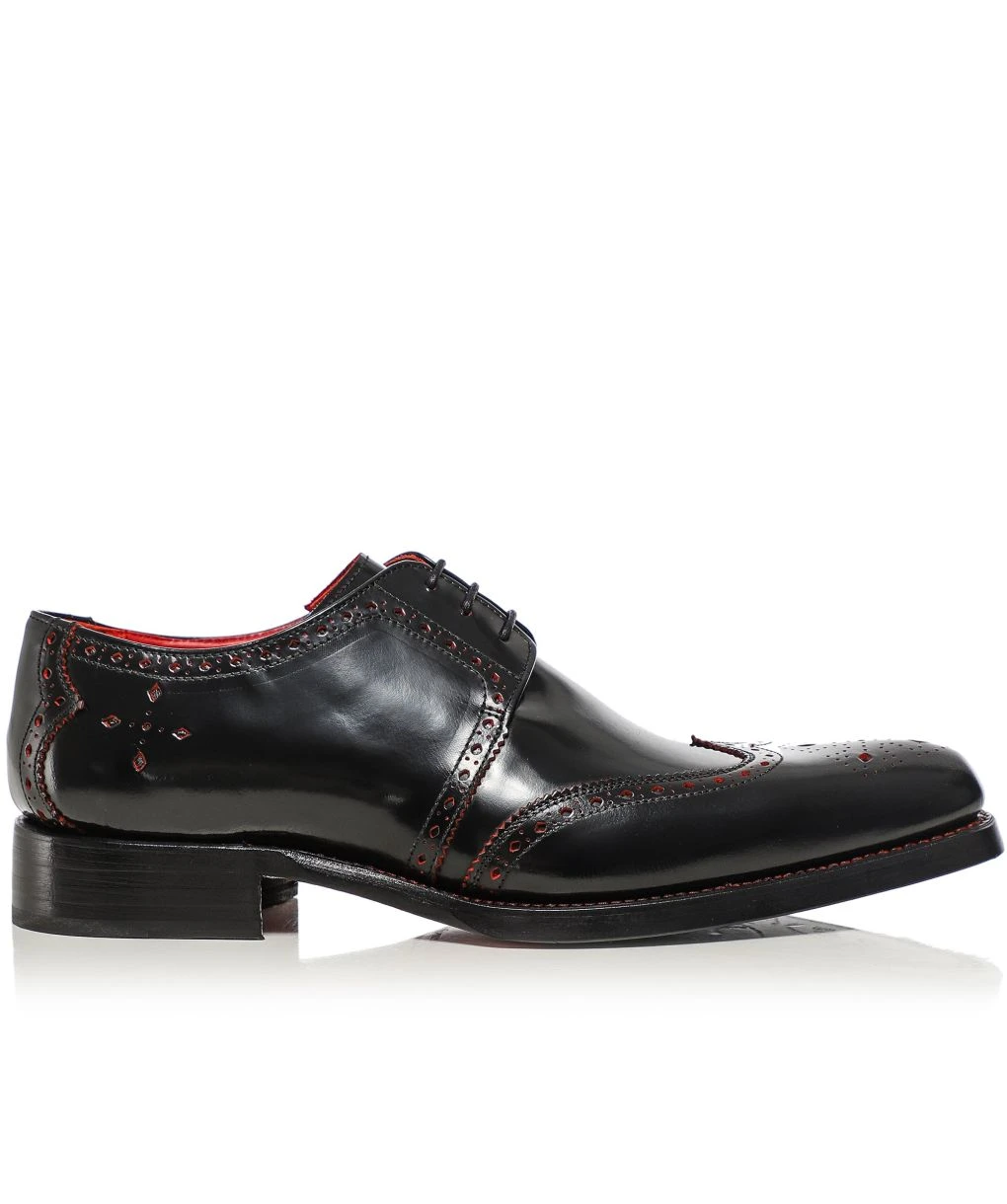Add polished refinement to your formal looks with the Jeffery-West Dexter Bay shoes. Elegantly crafted in Spain using the finest leather, the derby shoes offer a distinguished aesthetic, with the Goodyear welted construction providing superb longevity. Featuring signature red accents, lace up fastening and high-shine finish, whilst the brogue-style hole punch trims add charming detail.