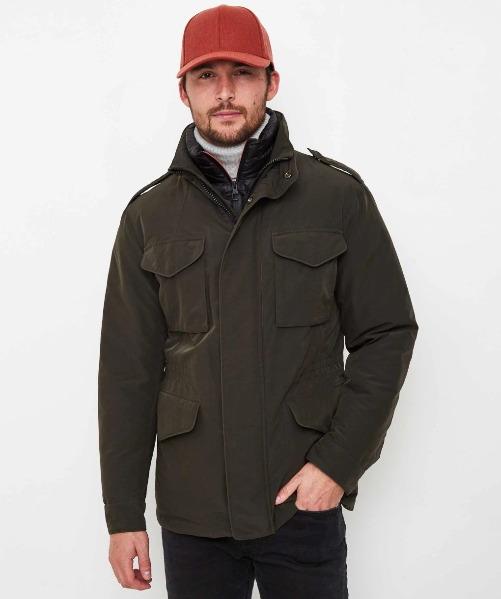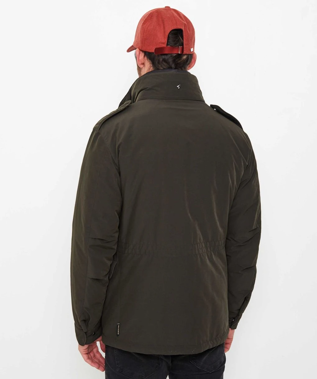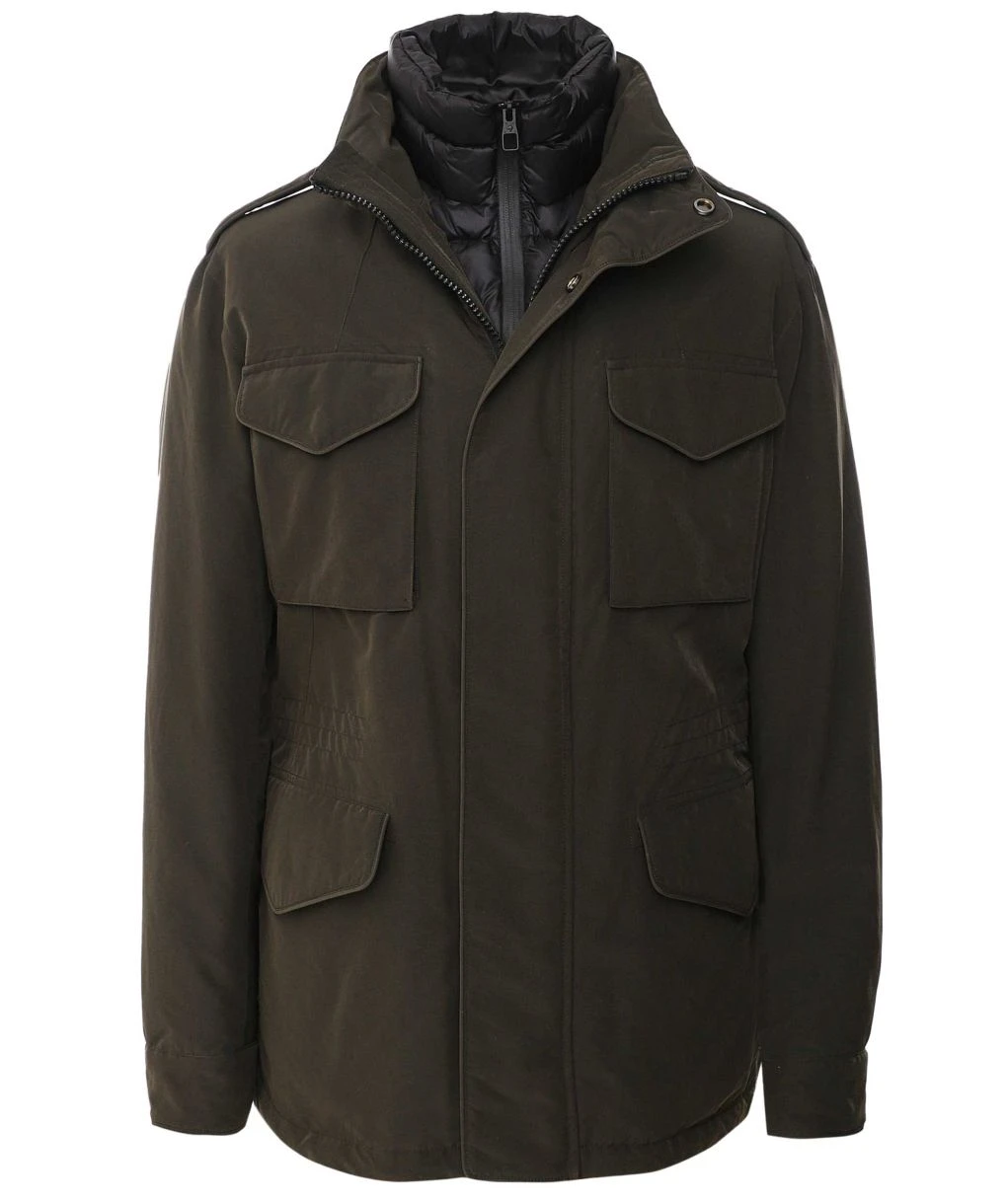 The Montecore utility jacket has been crafted in a technical fabric that boasts exceptional comfort levels and shape retention. Complete with a removable zip bib and premium down filling, the jacket will ensure optimum warmth. Featuring a concealed zip and snap button closure and military-style shoulder epaulettes, whilst the four pocket front makes for ample storage.