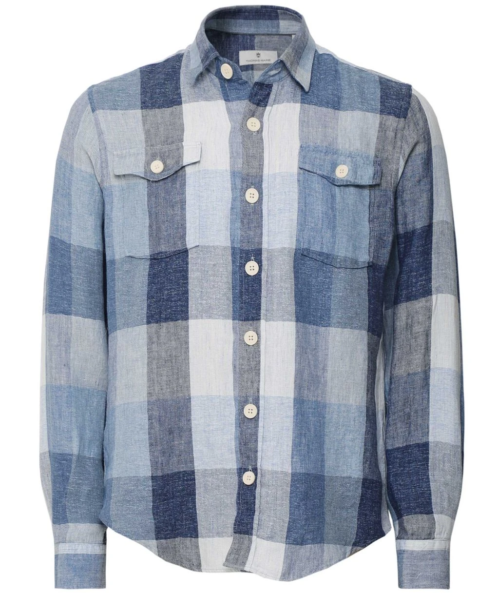 The Thomas Maine check overshirt is set to lend your summer attire stylish workwear inspiration. Engineered in pure woven linen, the overshirt guarantees essential cooling qualities. Featuring a pointed collar, buttoned cuffs and functional buttoned chest pockets, whilst the oversized buffalo check makes for a country heritage aesthetic.