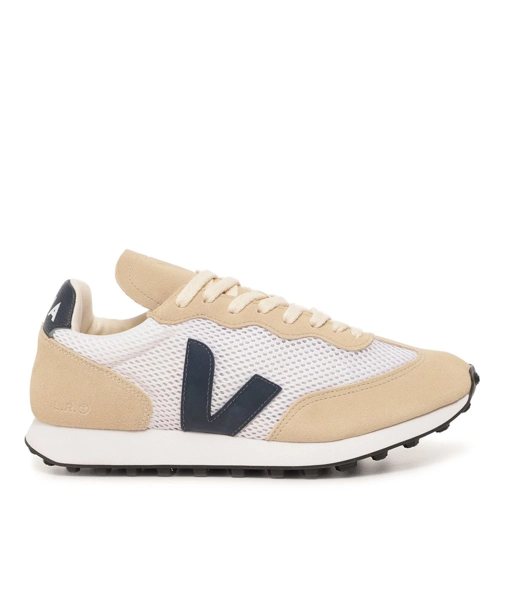 The VEJA Rio Branco trainers are a responsible sneaker packed with sporty attitude. Engineered with lightweight Alveomesh uppers, the beige sneakers are finished with suede panels for a dynamic aesthetic. Featuring a lace fastening and navy V-branded sides, whilst the recycled poly lining will ensure breathability and comfort. The VEJA trainers have been crafted in Brazil and are complete with a sugar cane insole and wild rubber outsole that has been harvested from the Amazonian forest – showcasing the label’s ethical goal to encourage fair trade.