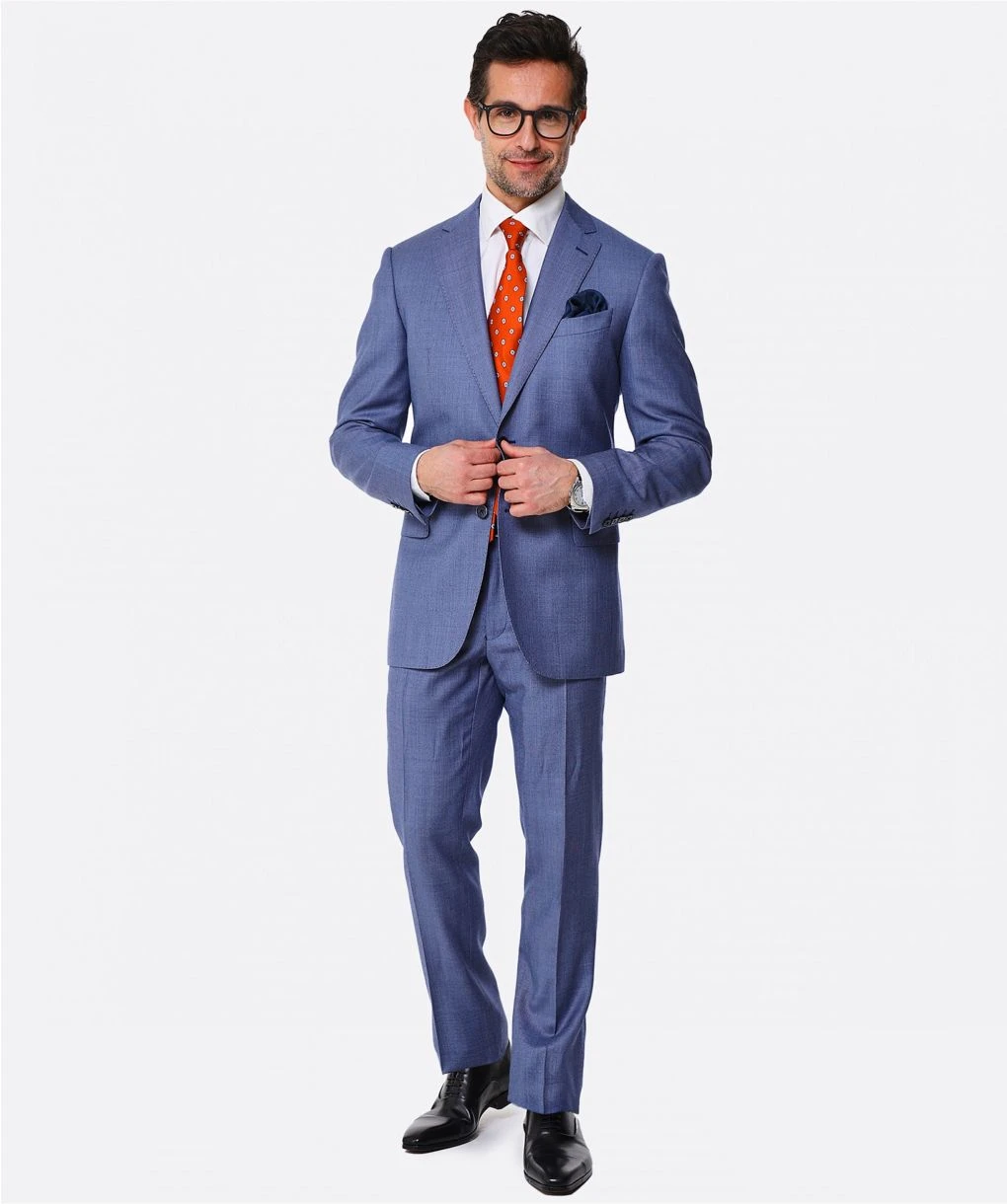 As part of our in-house menswear label, the J. Blades birdseye suit is a superb piece of tailoring ideal for all formal occasions. Lovingly crafted in pure virgin wool with a birdseye weave, the two piece suit offers a sumptuously soft handle and clean-cut silhouette. Comprising of a single breasted jacket with two button fastening, whilst the matching trousers feature a zip fly, four pocket design and belt loops. The J. Blades suit has been designed with unfinished trouser hems allowing you to tailor to a perfect leg length.