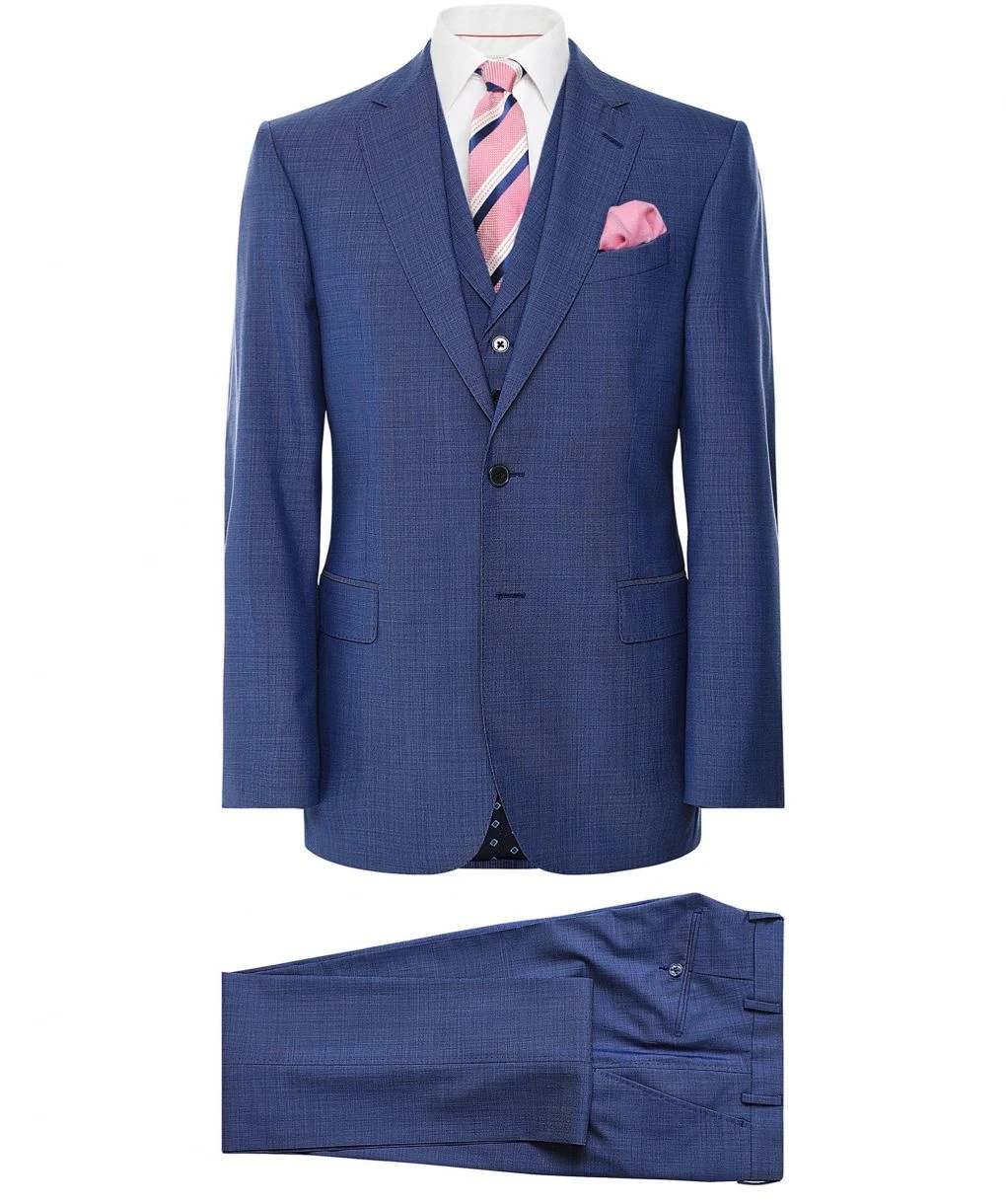 As part of our in-house menswear label, the J. Blades pin dot suit is a superb piece of tailoring ideal for all formal occasions. Lovingly crafted in pure virgin wool with a pin dot weave, the three piece suit offers a sumptuously soft handle and clean-cut silhouette. Comprising of a single breasted jacket with two button fastening and collared waistcoat, whilst the matching trousers feature a zip fly, four pocket design and belt loops. The J. Blades suit has been designed with unfinished trouser hems allowing you to tailor to a perfect leg length.